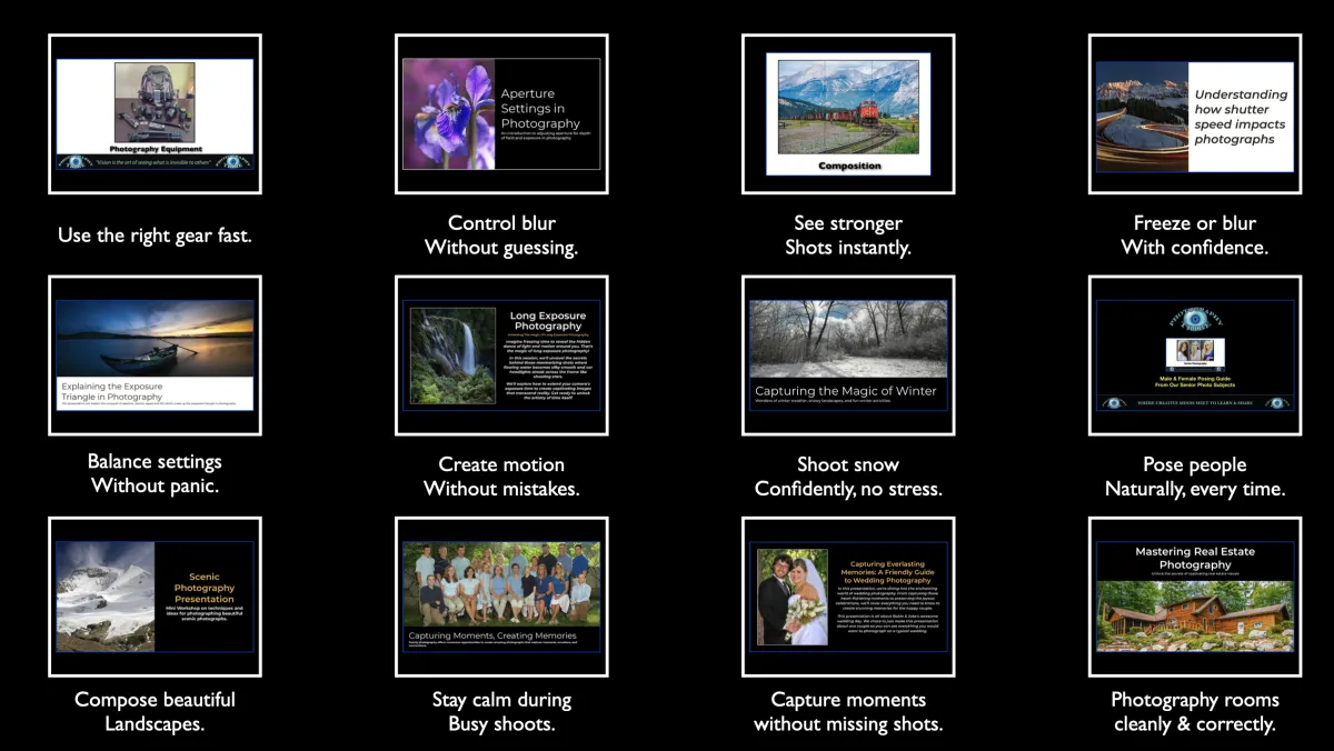 Not at all! The playbooks work whether you’re using a DSLR, mirrorless camera, or just your smartphone. The tips are simple, clear, and easy to apply no matter what you’re shooting with.